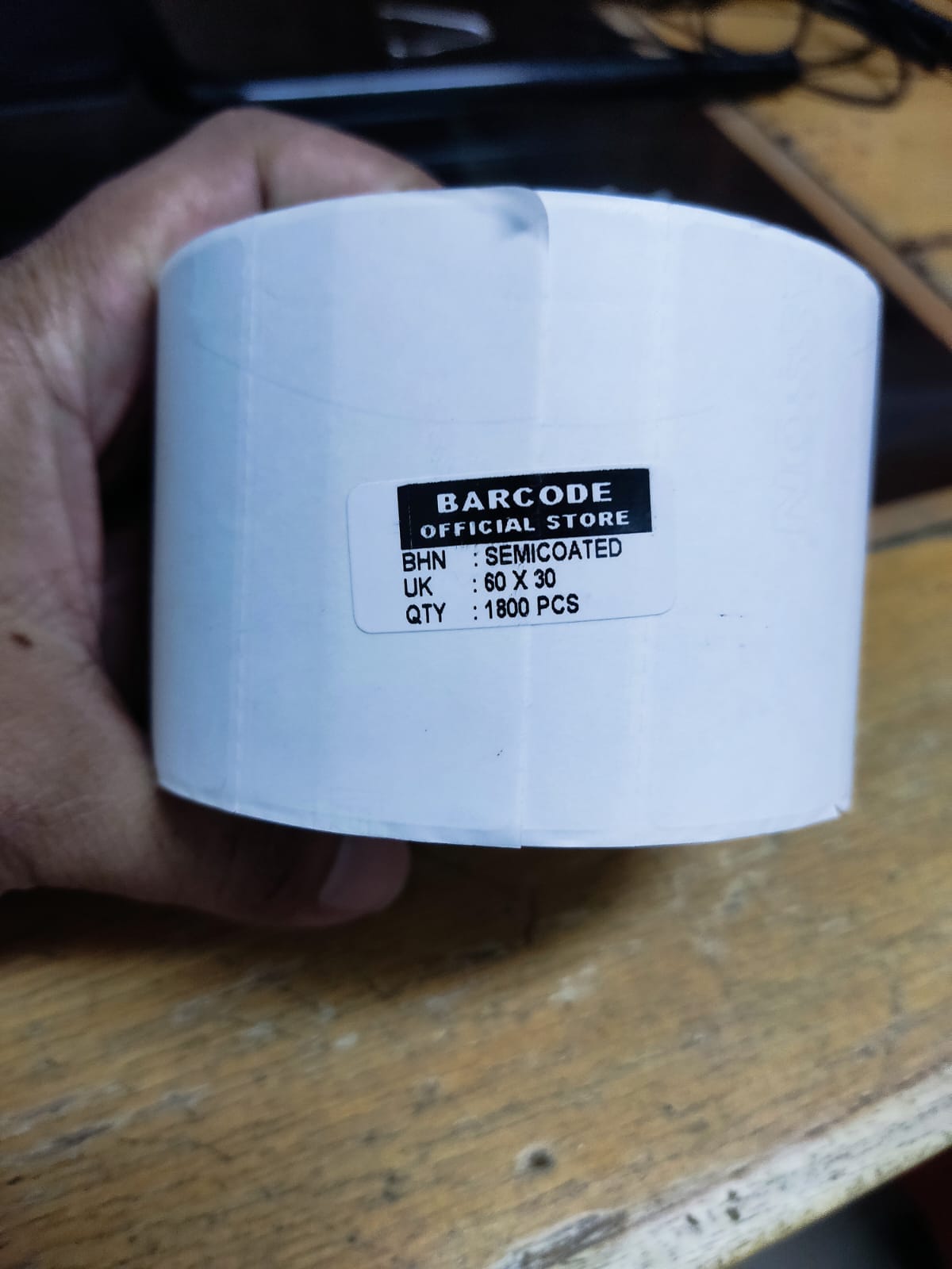 Label Semi Coat merupakan Label Barcode dengan Karakterisktik yang mempunyai Lapisan (coat) pada lapisan stiker paling atas. Lapisan tersebut berfungsi untuk menutup pori-pori pada kertas stiker agar poada saat mencetak barcode tersebut, unsur carbon ribbon dapat tercetak dengan sempurna.